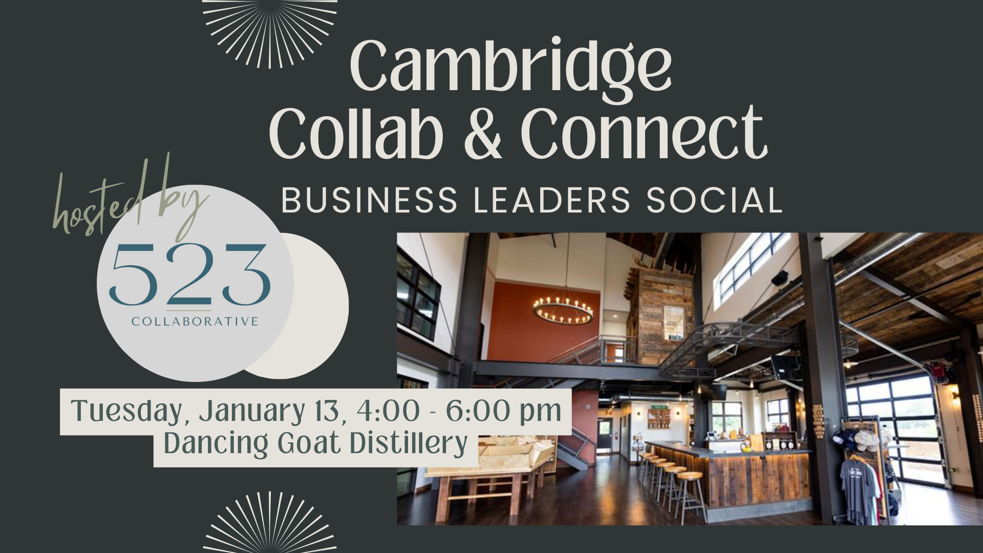 Kick off the new year by connecting with fellow Cambridge business leaders! Join us Tuesday, January 13 from 4-6 pm at Dancing Goat Distillery for an evening of networking, updates, and good conversation.